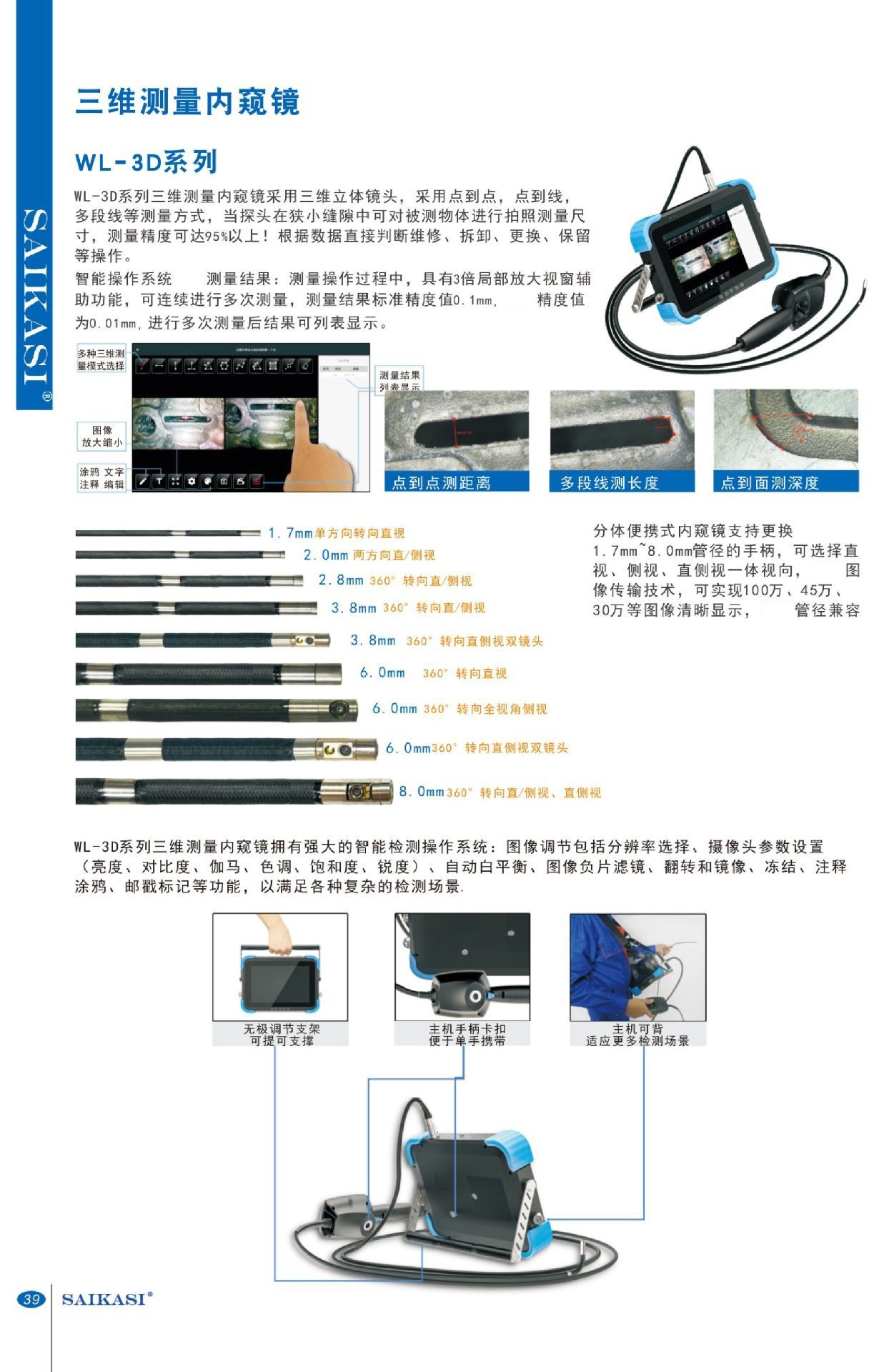 • 產(chǎn)品名稱SAIKASI/賽卡司 三維測(cè)量?jī)?nèi)窺鏡 WL-3D系列 工業(yè)內(nèi)窺鏡