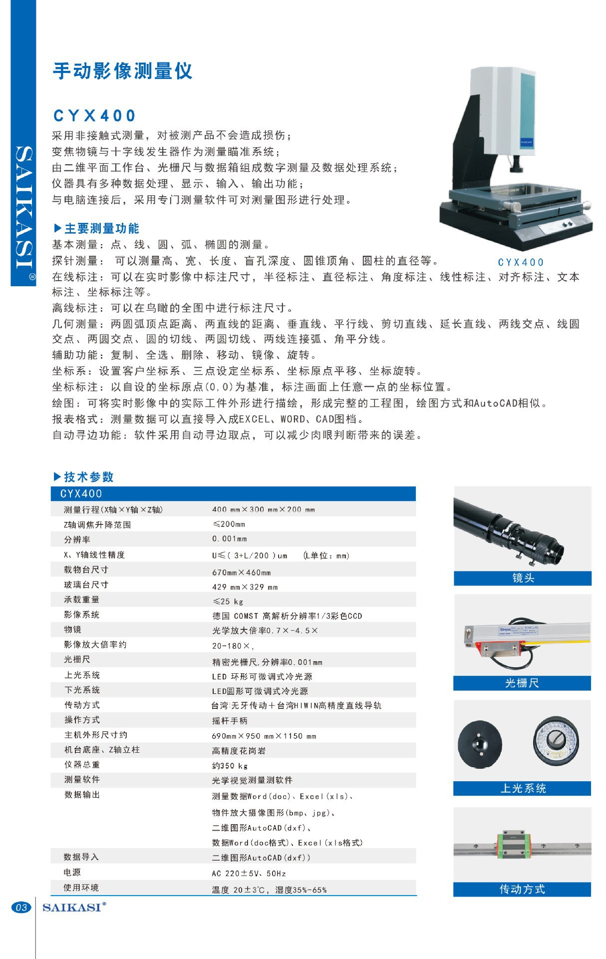 SAIKASI/賽卡司 手動影像測量儀CYX400 光學二次元影像測量儀